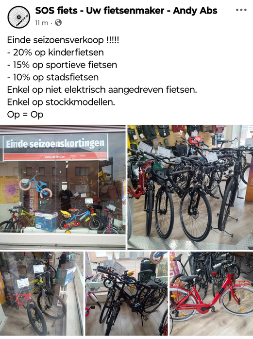 Wegens plaatsgebrek gaan we ons volledig toespitsen op Elektrische fietsen en houden we een uitverkoop op alle kinder en stadsfietsen.